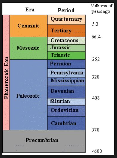 Camels often sit down mighty painfully. Perhaps their joints creak. Perhaps early oiling might prevent permanently hazardous aging. Or perhaps these sentences are just simple mnemonics and we are trying to remember the names of the geological periods. Here they are: Cambrian, Ordovician, Silurian, Devonian, Mississippian, Pennsylvanian. Each represented by the initial letter of each word in the first sentence. That brings us to 300 million years ago and our camel is seated, painfully. From the sentence “Perhaps their joints creak” we get Permian, Triassic, Jurassic, Cretaceous. We have just killed off the dinosaurs and seen the rise of mammals. The last part of the mnemonic (oiling to prevent aging) gives us the epochs Paleocene, Eocene, Oligocene, Miocene, Pliocene, Pleistocene, Holocene, Anthropocene.