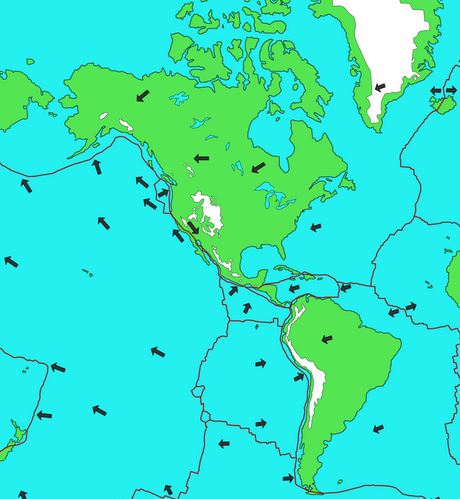 These motions are not all smooth sailing. On some parts of the planet, sudden jerks result in horrendous earthquakes. The mid-sized Nazca Plate is grinding itself under South America at a rate over 8 centimetres a year. Its movements are not steady. These are not the progressions of plodding oxen, but rather the leaps of a kangaroo. Sometimes the abrupt jumps are astonishing. I narrowly missed experiencing a violent three-metre crustal leap during the 2010 Chilean earthquake. Near the epicentre, the town of Concepción moved the length of a car in a single lurch as one tectonic plate climbed over another. Now that it has jerked ten feet, it will probably not move again for 50 years. Elsewhere (Iceland, for example) the ground is fairly steadily ripping apart. The place has volcanoes (Eyjafjallajökull kept me in central Europe for a week in 2010 when all flights home were grounded.), but Iceland has few serious earthquakes. However, the island nation is simply slowly ripping apart.