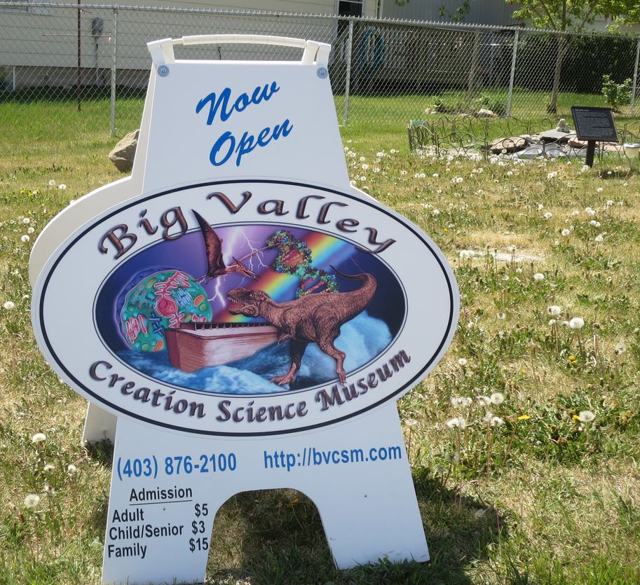 The town of Big Valley is lovely. I liked it a lot. In a day or two, I’ll write about this small rural Canadian community with its steam passenger train and archeological ruins. But today, I’m focusing on the town’s unfortunate Creation Science Museum. Unfortunate for the town, that is.